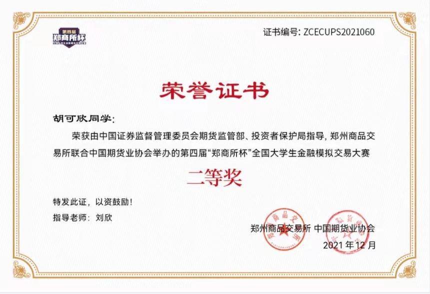 已经举办了四届的投资理财规划大赛获得2021年“郑商所杯”大学生金融模拟交易大赛全国二等奖1项、三等奖1项、优胜奖2项,长春大学获评吉林省唯一一所省属院校“大赛优质合作高校奖。”大赛的不断举办,对于普及投资理财规划知识,提高学生投资理财规划能力具有强烈的现实意义。