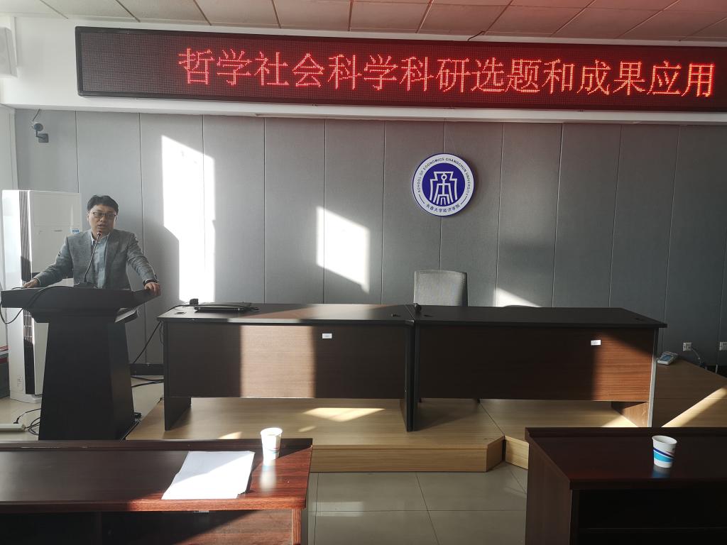11月9日,在综合楼C区705室举办第六期经苑学术论坛,本期论坛特别邀请了长春理工大学法学院院长张闯教授做了《哲学社会科学科研选题和成果应用》的报告,张闯教授从其多年从事科研、教学以及管理者不同角色的亲身感受,以哲学社会科学科研选题和成果应用为主线,围绕科研选题的实用性、应用型横向科研课题的选题及应用、社会科学类科研成果的采纳和转化探析三个方面与参与论坛的师生展开交流。