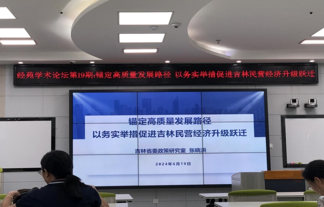 2024年6月19日,学院在综A401举办了第十九期“经苑学术论坛”。本次论坛特别邀请了省委政研室张晓洪处长,主讲的主题为“锚定高质量发展路径,以务实举措促进吉林民营经济升级跃迁”。