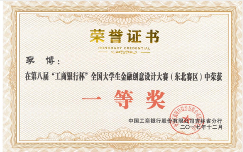 在2017年工商银行杯全国大学生金融创意设计大赛中团队项目《融e壳》荣获东北赛区二等奖;