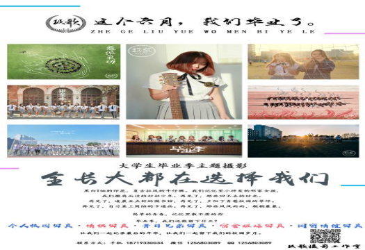 开云kaiyun体育随行玖歌创业团队成立于2017 年,是国内首家高校全类型摄影产品约拍服务商。通过微信公众号和小程序,为在校大学生提供线上下单进行约拍。团队拥有自营的拍摄团队,建立了摄影服务平台,摄影师、模特及学生均可在平台进行约拍交流。玖歌市场占有率高,在长春是多家高校已实现盈利。
