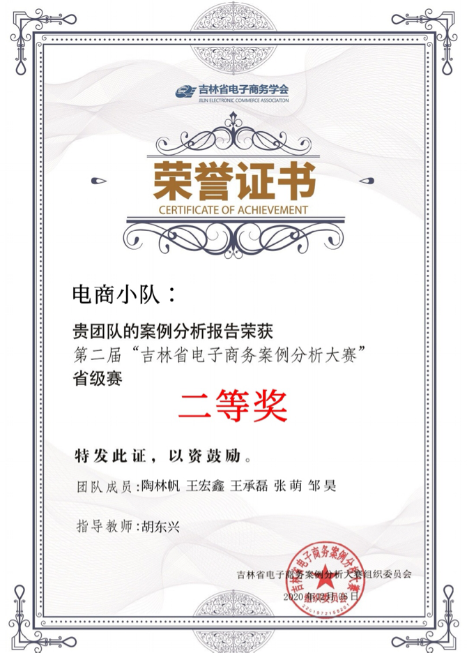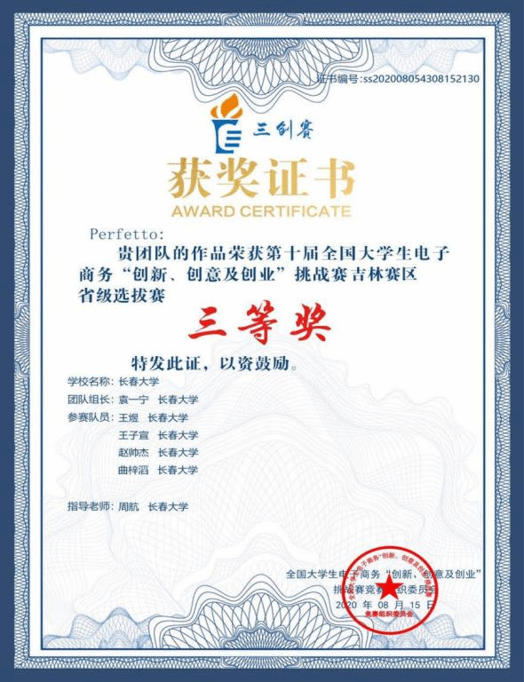 该项目作为国家级大创项目,荣获第十届全国大学生电子商务“创新、创意及创业”挑战赛省级三等奖,第六届吉林省互联网+大学生创新创业大赛省级铜奖等多个奖项,已发表论文一篇。