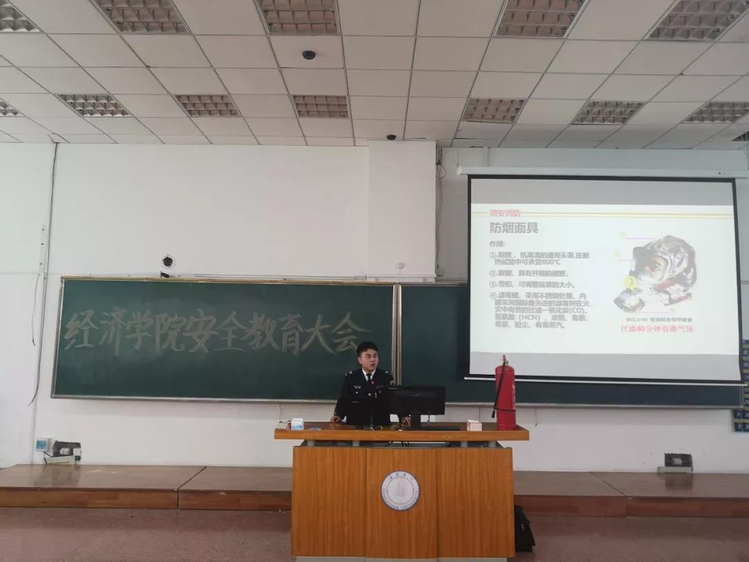 为进一步加强开云官网师生消防安全意识,提高自我应变和防护能力,3月27日,学校安全处与开云官网在第六教学楼大阶梯三教室联合举行了安全教育大会。吉林省消安消防知识宣传中心教官徐依樊担任主讲,开云官网部分教师、主要学生干部及寝室长参加了此次会议。