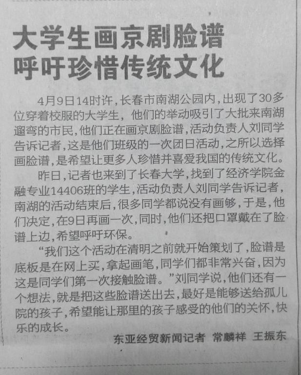 2014年4月9日,一场以“绘画京剧脸谱、弘扬中华传统文化”为主题的团日活动,由开云kaiyun体育14406团支部在南湖公园拉开了帷幕。