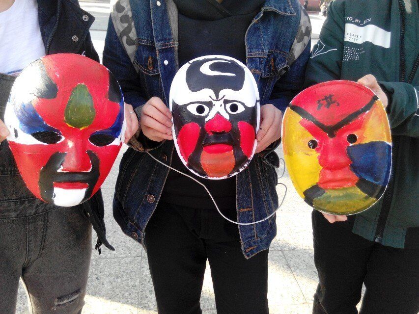 同学们在整个活动中共绘画完成了100个脸谱,有的脸谱被参加活动的人带走珍藏了,还有的人留下了自己的作品想让更多的人了解参与。