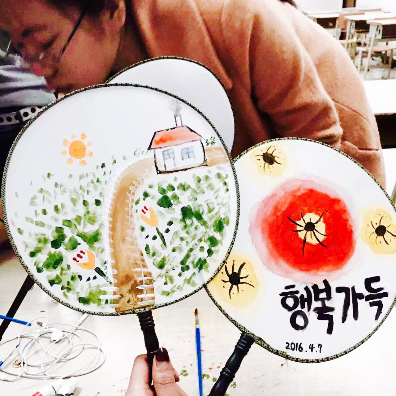 同学们根据各自的理解与想象,通过颜料和笔墨,将诗歌或图画展现在扇子上。