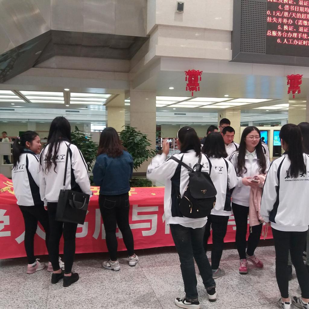 在团支书带领下同学们首先参观吉林省图书馆,而后在一楼开展以“走进书店,探求知识”为主题的“一站到底”有奖知识竞答活动。