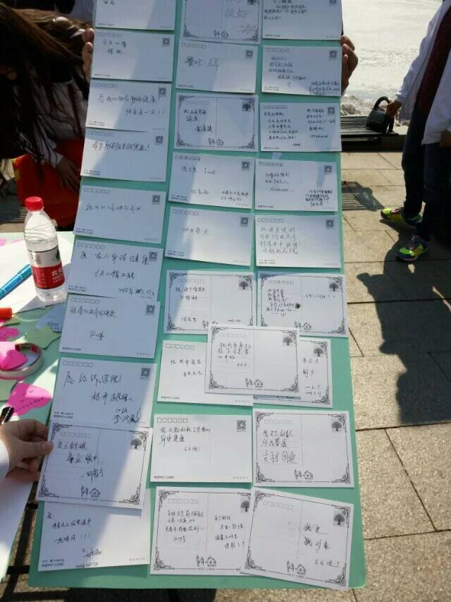 同学们邀请路人参与活动,为自己爱的人写一张明信片,用明信片,用明信片传递一份爱与祝福,并送上精美手工DIY礼物。
