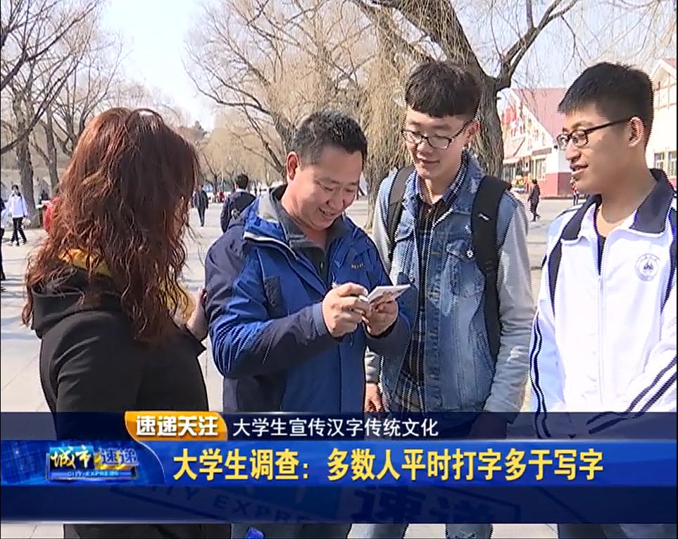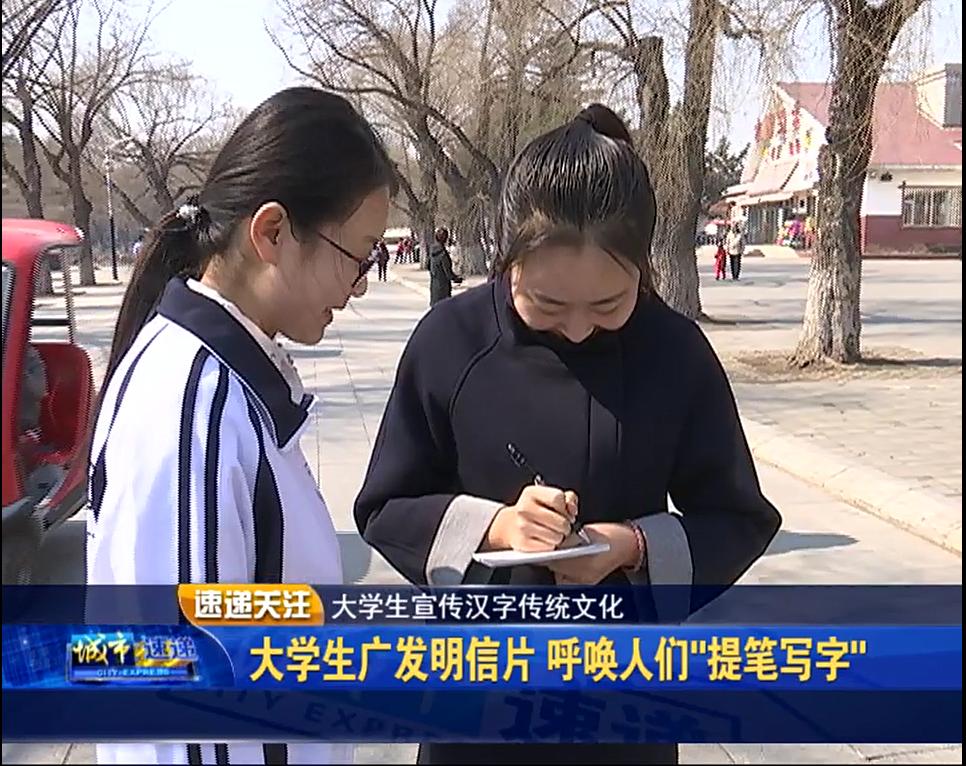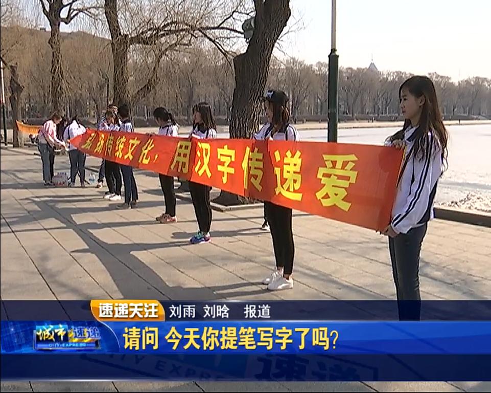 【重点】长春电视台《城市速递》栏目在3月28日的午间新闻报道了本次“弘扬传统文化,用汉字传递爱”的活动,同学们在采访中表示,希望能够通过此次活动呼吁社会上更多人肩负起弘扬传统文化的责任,将国家优秀文化传承下去,让中华文化之源永不枯竭,赢得了社会广泛好评。