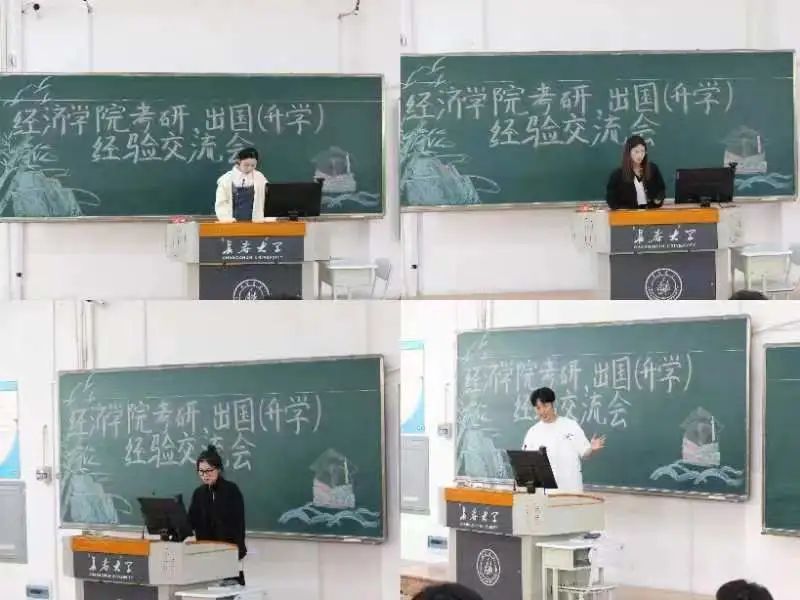 会上,由2023届考取东北师范大学的姚爽、太原理工大学的王一涵、吉林财经大学的鲍媛媛、英国伦敦玛丽女王大学的赵阮龙等同学进行经验分享,四名同学分别从学校专业选择、课程学习、面试准备等方面进行分享。随后,针对考研、出国(升学)方面有疑惑的同学,进行沟通交流。