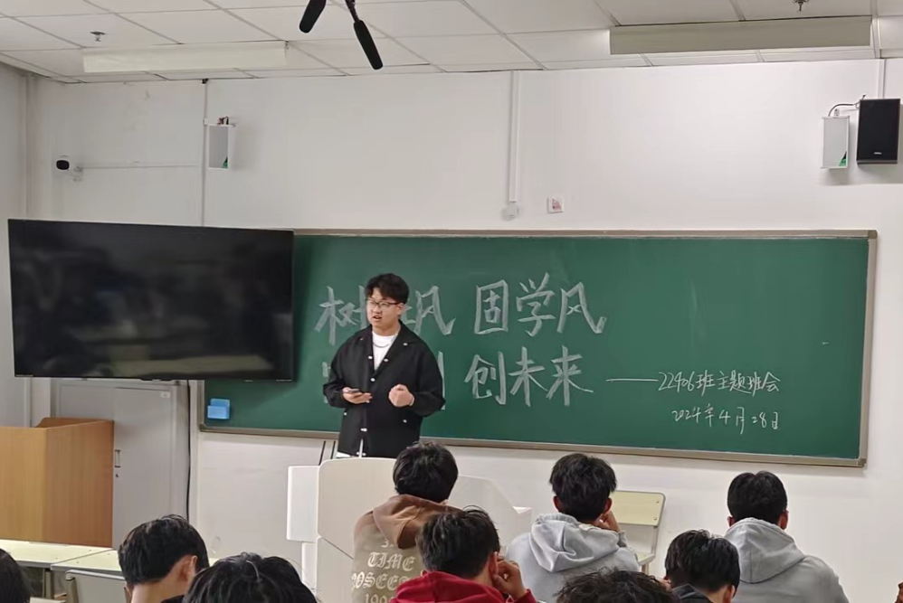 班会上,学生围绕班风建设、学风促进以及个人规划三个方面进行阐述,大家在交流的过程中分析自身存在的问题以及未来的努力方向。学业导师和班主任分别从专业学习、考研、考公、考英语四六级等方面对学生进行指导并提出合理的建议。辅导员从党团建设、班级建设、团队凝聚力等方面着重强调了班风、学风、考风的重要性,并通过生动的案例、深入的分析、引导学生们深入思考自己的兴趣、优势以及未来的职业发展,鼓励学生积极面对挑战,敢于尝试新鲜事物,尽早明确自己的职业目标。