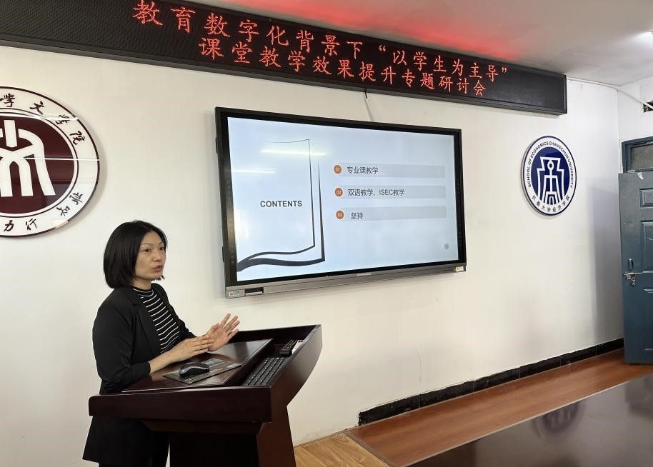 学院教师田艳芬、孙会敏和季宇分别作了主题发言。三位教师均为吉林省高校教师教学大赛的参赛教师,同时也为中外合作办学ISEC项目金融工程专业的授课教师。她们结合自己的参赛经历、在国际化人才培养中探索的以学生为主体的课堂教学方法、教育数字化为课堂教学带来的机遇与挑战与学院教师分享了在教育数字化背景下,如何进行教学方法创新,以学生为主体,提高课堂教学效果方面的个人观点。