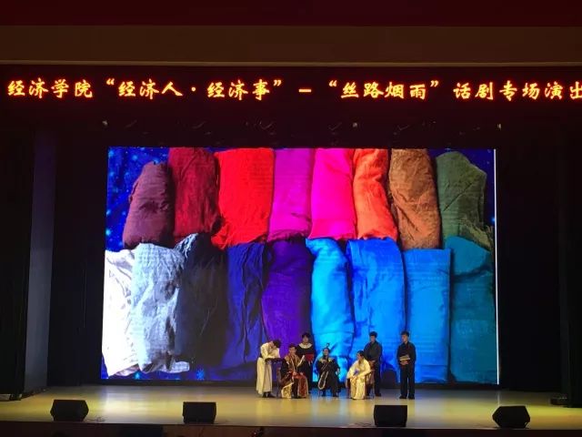 此次话剧展演活动以 “丝路烟雨”为主题,以抗击匈奴为背景,演绎了张骞出使西域,和多个国家达成互市通商协定的历史故事。话剧分五幕展开,从汉武帝派遣张骞出使西域拉开帷幕,分别讲述了张骞通过以物易物的交换方式与大宛国王商谈通商协定,运用商务谈判及策略同康居商人达成贸易往来协定,与大夏国互通有无,将汉朝先进的技术传到西域地区的十三载西域之行。演员们精湛的表演,生动演绎了张骞这一路的所遇所感,再现了汉代政治、经济、文化的繁荣景象,博得了观众阵阵喝彩。