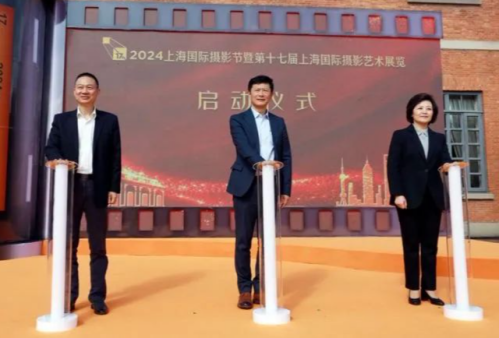 中国文联副主席、中国摄协主席、金砖国家影像联盟主席李舸,上海市文联党组书记、专职副主席夏煜静,杨浦区政协主席邰荀共同为2024上海国际摄影节暨第十七届上海国际摄影艺术展览启幕