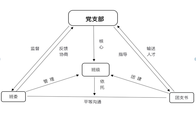 1.充分发挥学生党支部对班级团支部及班委会的带动作用和团支部、班委会对党支部的促进作用,强化传导压力和动力。(附党建带团建传导图)
